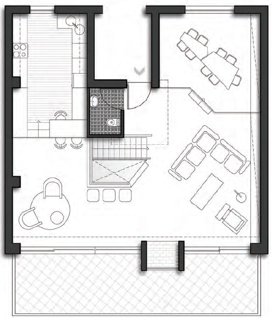 This small apartment (80 sq. m.) stands out for the simplicity and practicality of its design, the warm interior finishes and the carefully worked carpentry.
