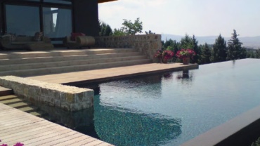 The living room has curtain wall windows reaching up to the 4 meter high ceiling on the south and west sides, providing a gorgeous panoramic view of the gulf of Thessaloniki. In the east wing, half a level lower, is the kitchen with access through the pantry to the dinning area that overlooks the internal garden. The kitchen opens into a paved area that includes the B.B.Q. and leads to the upper gardens to the east. From the master bedroom on the upper floor, there is the fantastic panoramic view of the gulf of Thessaloniki, and a private access to an 80 sq.m. roof garden with the same breathtaking view. The master bedroom also features a dressing room and an en-suite bathroom. There are also 3 children bedrooms situated in the east wing. Situated directly below the main living room, the playroom features the wet bar and home cinema. A spa, including a steam bath, shower, Jacuzzi and W.C. There is also the possibility of installing a gymnasium in this area. Finally, a spacious guest room with en-suite bathroom facilities is ideally positioned at the lower level, to retain both privacy and tranquillity.