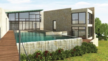 The design of this family house was determined by the peculiarities of its location at the junction of three busy streets. Stone and glass are used for the structure in a dynamic synthesis helping it to adapt as well as to achieve privacy. The interior meets the owners’ desire for open loft-like spaces, an indoor swimming pool and a large circular dinning room as the cardinal point of the house. The house’s L shape closes around its focal point, the garden, which brings together all the rooms.