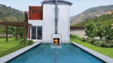 Floor to ceiling windows and doors diminish the severity of the volumes while taking advantage of the natural light. This building that hosts two residencies for a brother and sister is laid out along a main axis, which serves as an imposing façade. The interior is quite simple, with a loft like living room with a fire place by the swimming pool and an active kitchen. Three bedrooms are upstairs. There is a roof terrace by the vaulted zinc roof above the master bedroom. Large windows in the dinning room, a corner window in the living room, facing south are contrasting with smaller ones on the north side, letting in light while defining specific rooms of the house. A glass opening at the back of the fire place, allows for a dialogue between water and fire!